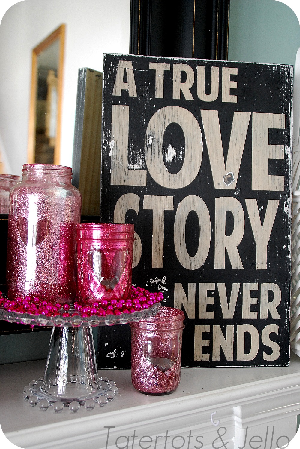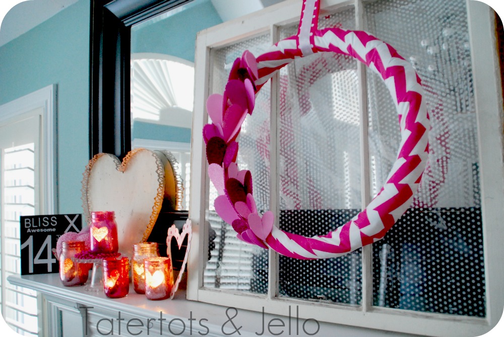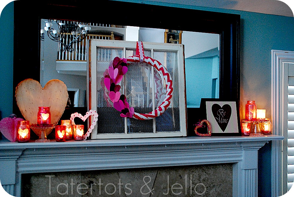 And such an inexpensive way to add some festivity to your mantel or it would be so pretty on a Valentine’s Day Dinner Table!!